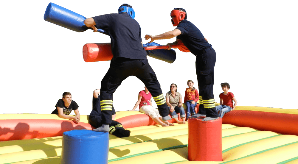 Wenn Sie den American Gladiator mieten, benötigen Sie eine Fläche von 9,0m x 7,0m / 4,0m. Das Modul kann draußen und drinnen aufbauen werden. Auf Wunsch können Sie bei uns auch einen Betreuer dazu mieten, der das Modul und die Gladiatoren beaufsichtigt oder als Schiedsrichter agiert. Hierfür können Sie aber natürlich auch eine beliebige Person verpflichten.