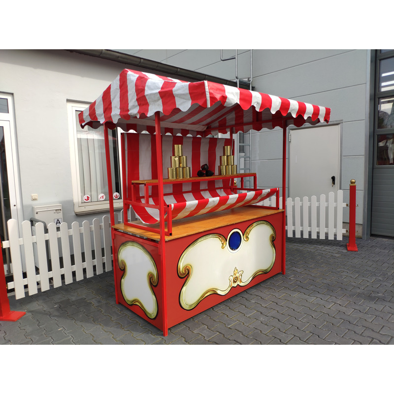 Was es zu gewinnen gibt, liegt bei Ihnen als Veranstalter. Von uns bekommen Sie den Marktstand, die Dosen und Wurfbälle. Dann heißt es nur noch: Achtung, werfen, treffen!