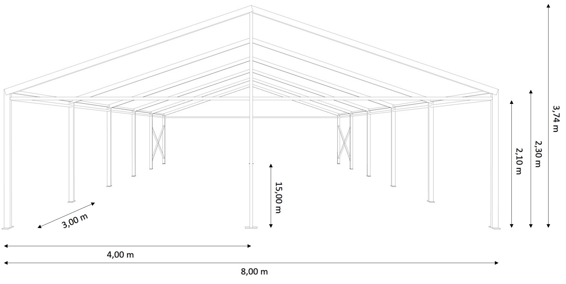 Rastermaß unserer Festzelte (Länge): 3,0m, im Rastermaß beliebig verlängerbar