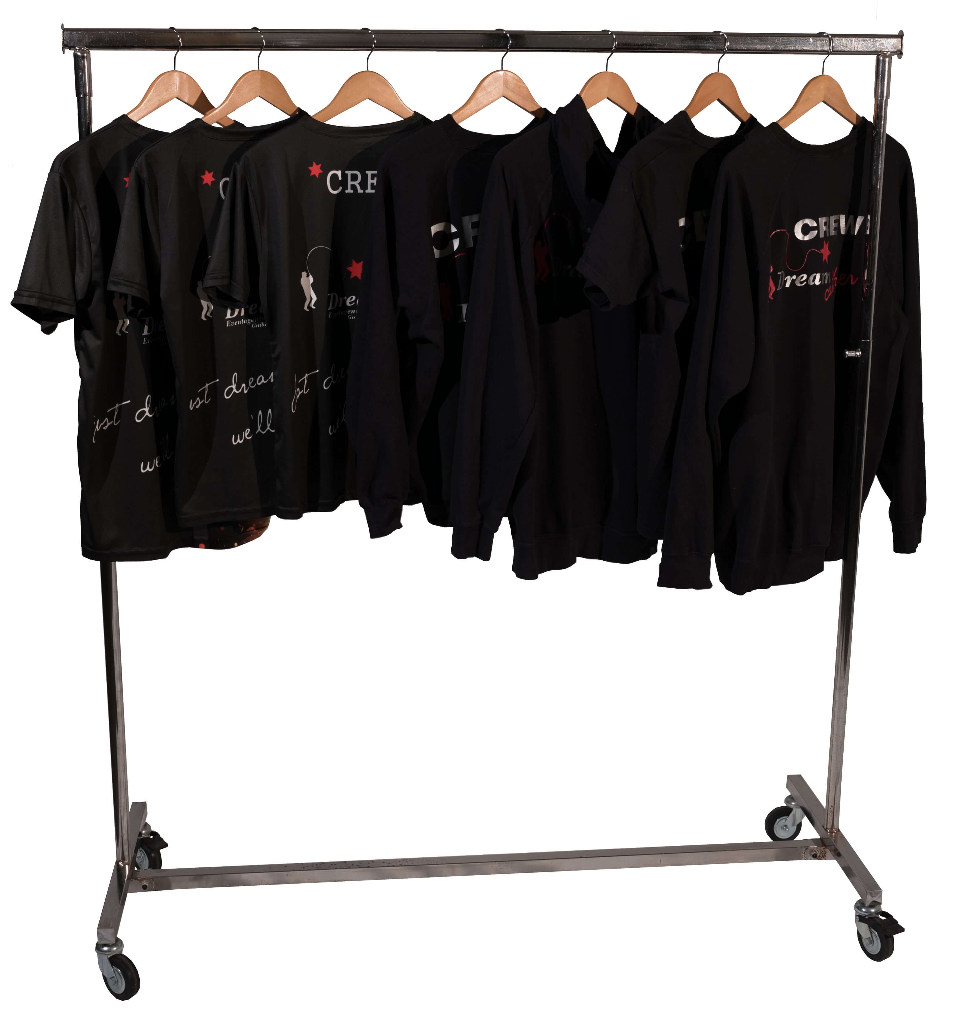 Der Kleiderständer hat eine Größe von 2 m, ist jedoch auf 3m ausziehbar, Zudem ist er höhenverstellbar und bietet Platz für 20-30 Winterjacken in allen Längen. Bei Bedarf liefern wir die Kleiderbügel gleich mit. Der Kleiderständer besteht aus Chrom und ist rollbar.