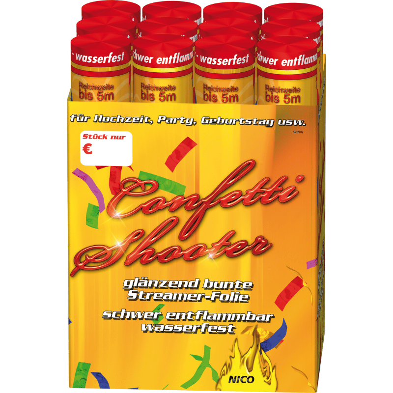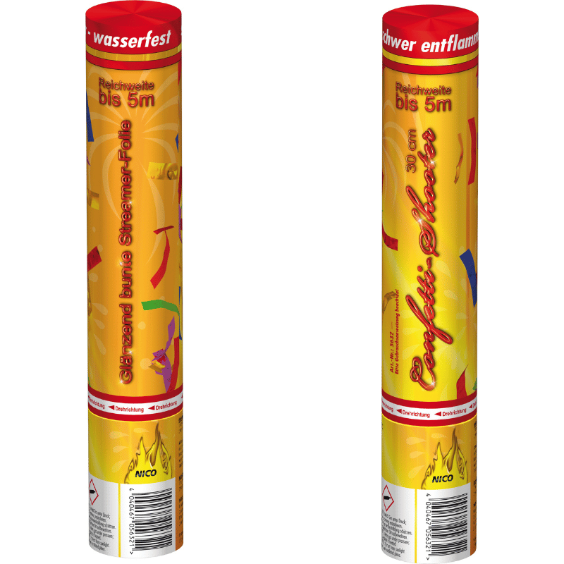 Die Confetti-Shooter mit Wow-Effekt sorgen für beste Stimmung, großen Spaß und gute Laune! Durch das Drehen des unteren Teils des Shooters, wird das Konfetti mittels Druckluft bis zu 5 Meter weit in die Höhe geschossen.