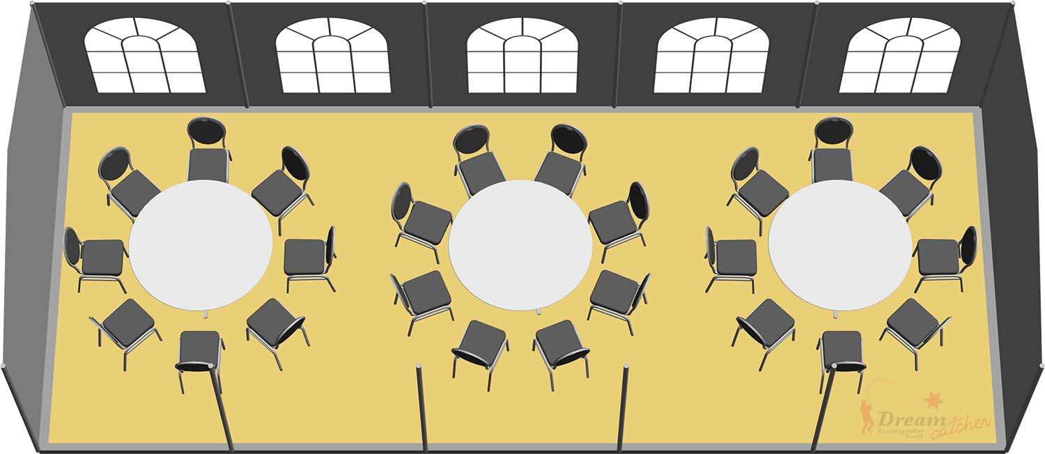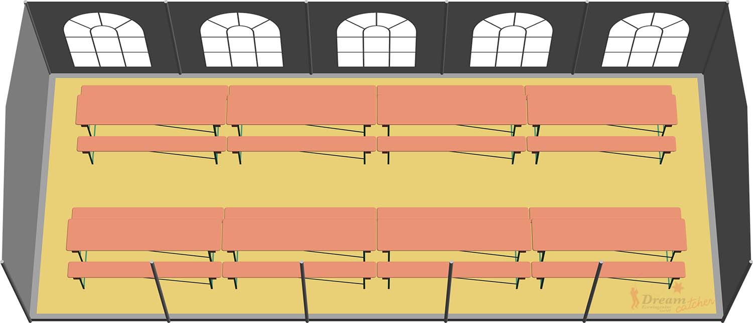 Sie sind sich unsicher, wie viele Personen in dieses Partyzelt passen? Wir haben Ihnen einige Nutzungsmöglichkeiten in einer Möblierungsübersicht für dieses Zelt zusammengefasst. Sie finden diese Übersicht als Download im unteren Bereich der Artikelbeschreibung.