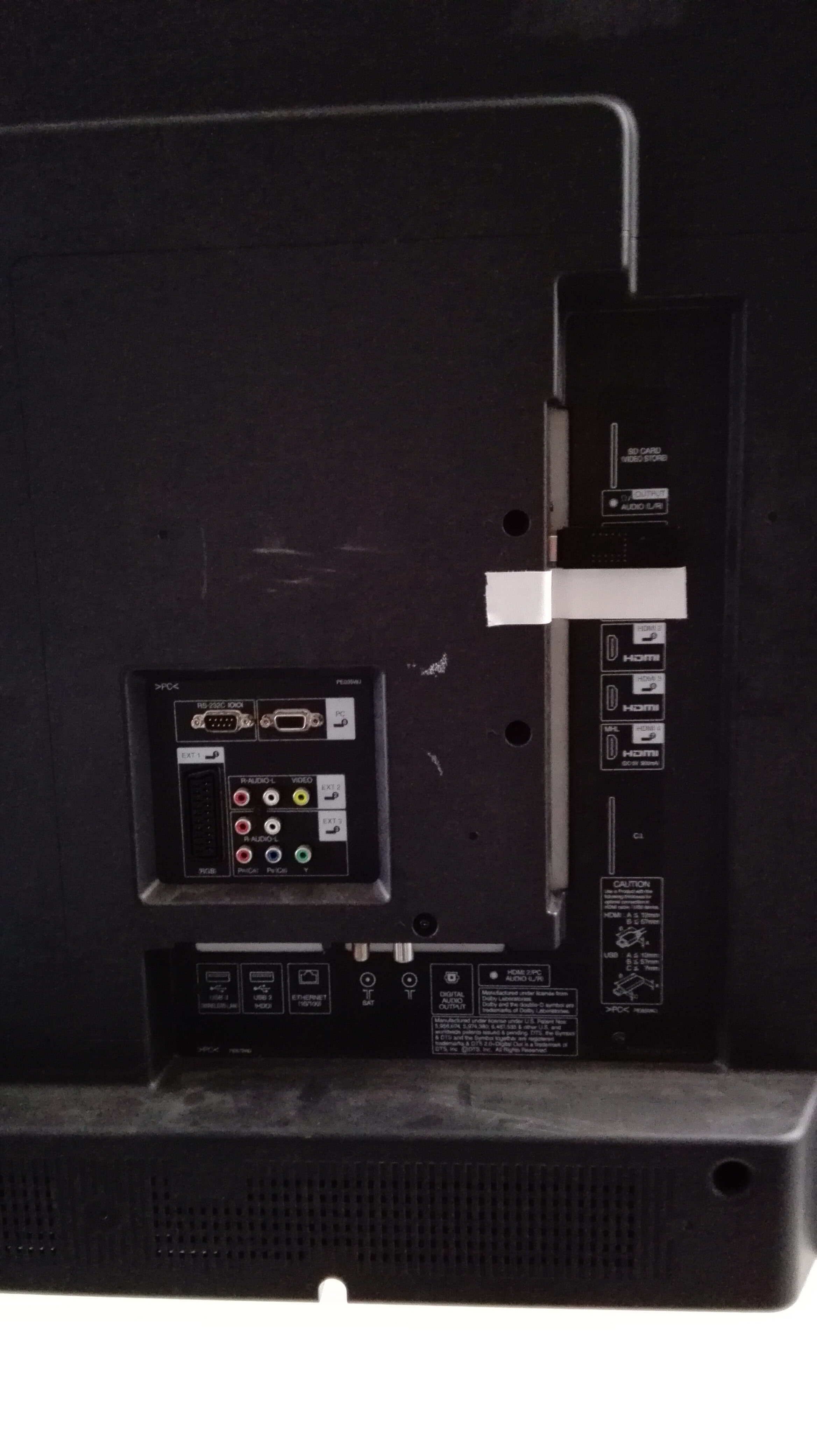 Das UHD Display der Firma Samsung hat eine Bildschirmdiagonale von knapp 250cm. Im Paket sind zusätzlich alle relevanten Kabel sowie eine Fernbedienung enthalten.